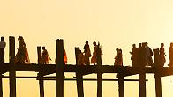 Today, head for Amarapura and join in the daily meal at Mahagandayon Monastery together with over 1,000 monks. Later, you will go to Ava for a glimpse of Bagaya Monastery, the Maha Aung Mye Bonzan Monastery and Htihlaing Shin Paya Pagoda. In the afternoon, cross the Irrawaddy River from the bridge and get to Sagaing Hill. A great time to visit U Bein Bridge is just after sunrise when hundreds of villagers and monks commute back and forth across it.